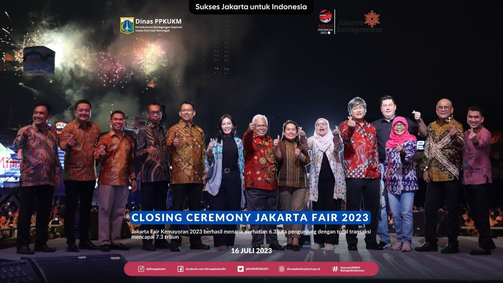 Dalam agenda tersebut, Sri Haryati selaku Asisten Perekonomian dan Keuangan Sekretaris Daerah Provinsi DKI Jakarta menjelaskan bahwa Jakarta Fair Kemayoran 2023 berhasil menarik perhatian 6.3 juta pengunjung dengan total transaksi mencapai 7.3 triliun.