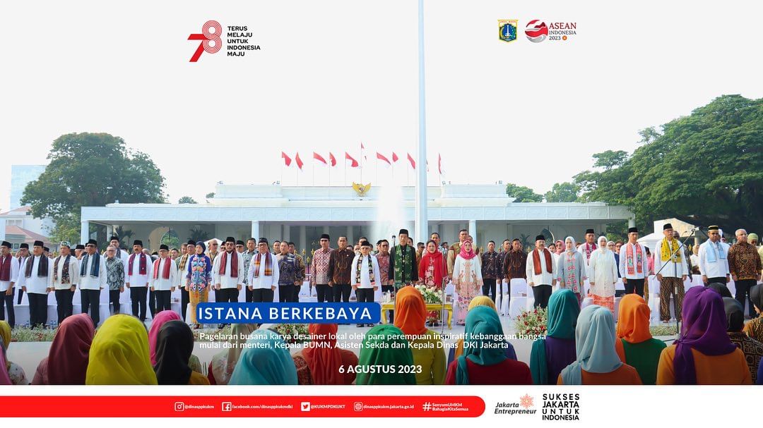 Sambut hari kemerdekaan RI ke-78, Pemprov DKI Jakarta bersinergi dengan Kementerian Sekretariat Negara menggelar kegiatan Istana Berkebaya di kawasan Jalan Medan Merdeka Utara pada hari Minggu (6/8).