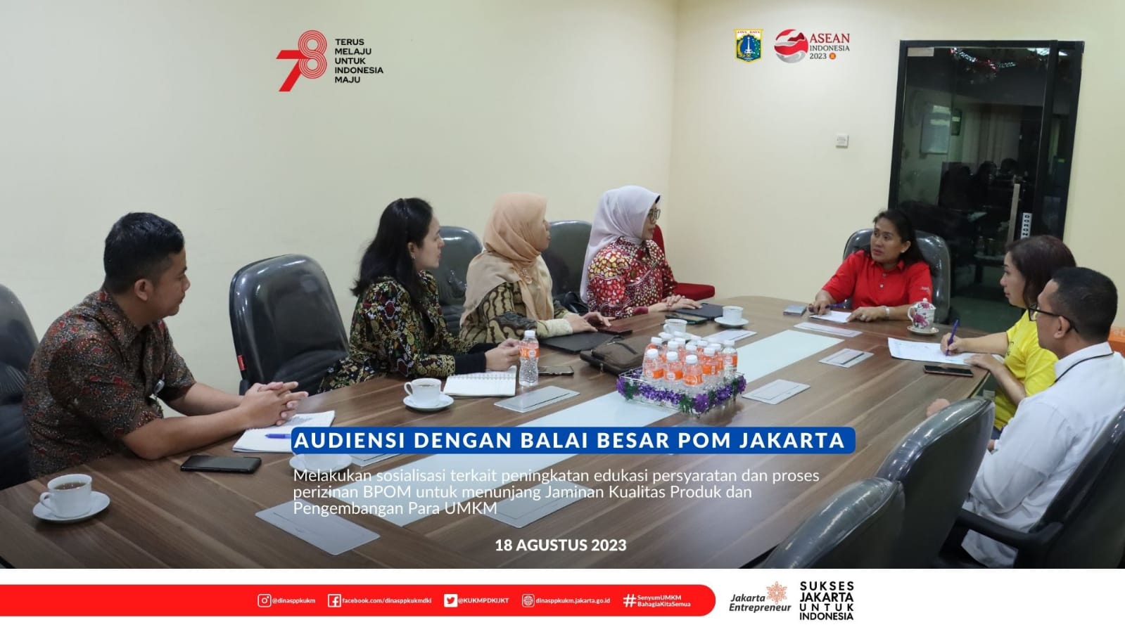 Audiensi tersebut dimaksudkan untuk melakukan sosialisasi terkait peningkatan edukasi persyaratan dan proses perizinan BPOM untuk menunjang Jaminan Kualitas Produk dan Pengembangan Para UMKM khususnya binaan Pemprov DKI Jakarta.