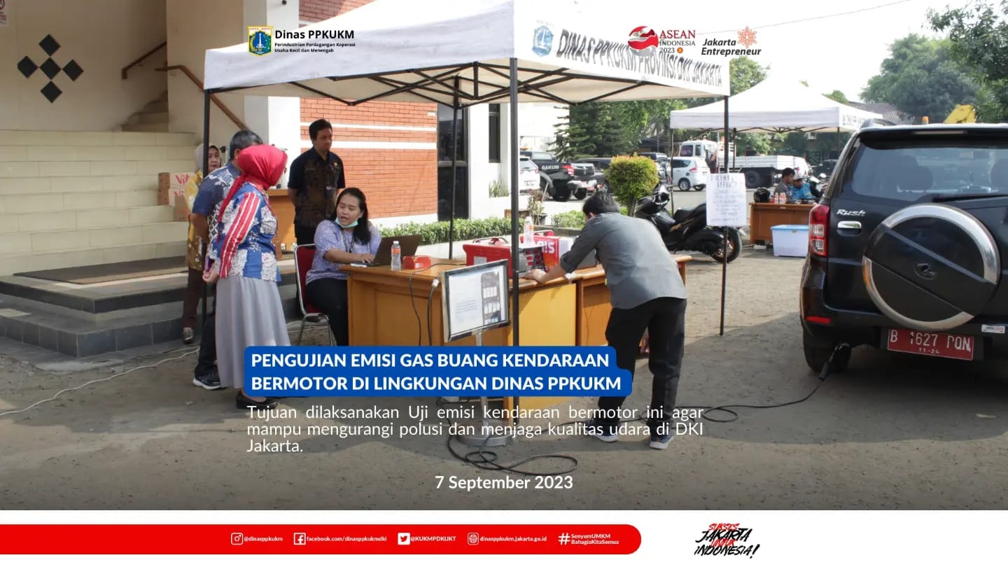 Dinas PPKUKM DKI Jakarta melakukan kegiatan pengujian emisi pada 7 September 2023, di lingkungan dinas PPKUKM DKI Jakarta.