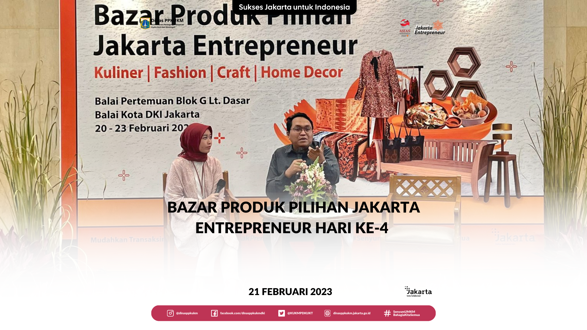 Hari keempat atau hari terakhir Bazar Produk Pilihan Jakarta Entrepreneur telah berlangsung di Blok G Lantai Dasar Balai Kota DKI Jakarta, pada Kamis, 23 Februari 2023.