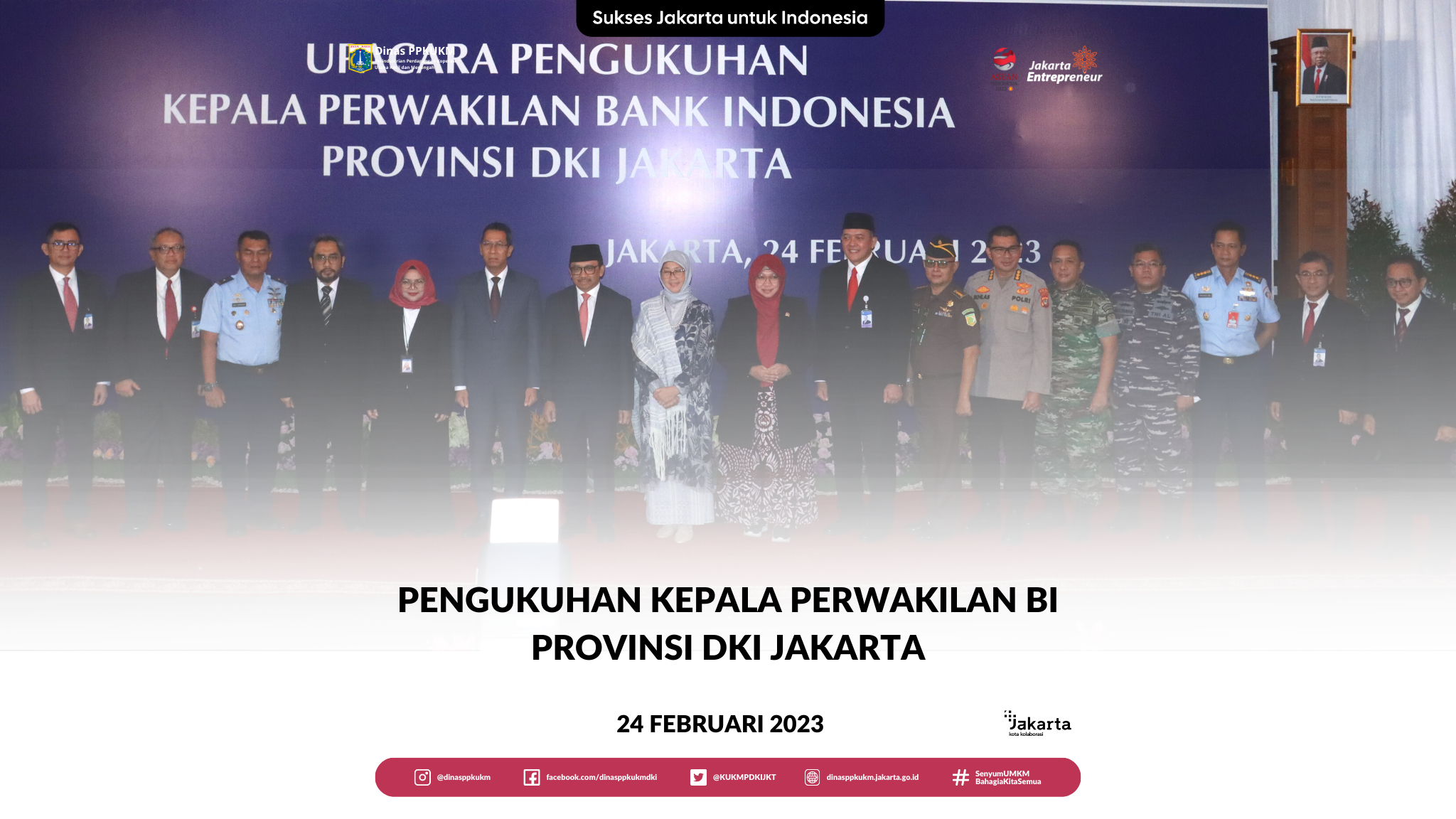 Kepala Dinas Perindustrian, Perdagangan, Koperasi, Usaha Kecil dan Menengah atau Dinas PPKUKM, Elisabeth Ratu Rante Allo menghadiri agenda Upacara Pengukuhan Kepala Perwakilan Bank Indonesia Provinsi DKI Jakarta, Arlyana Abubakar, yang dilaksanakan di Kantor Perwakilan Bank Indonesia Provinsi DKI Jakarta, Jakarta Pusat pada hari Jum’at (24/02).