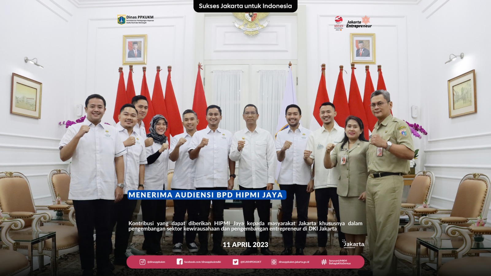 Pemerintah Provinsi DKI Jakarta menerima audiensi Himpunan Pengusaha Muda Indonesia Jaya/Jakarta atau HIPMI Jaya di Balai Kota DKI Jakarta, Jakarta Pusat pada hari Selasa (11/4).