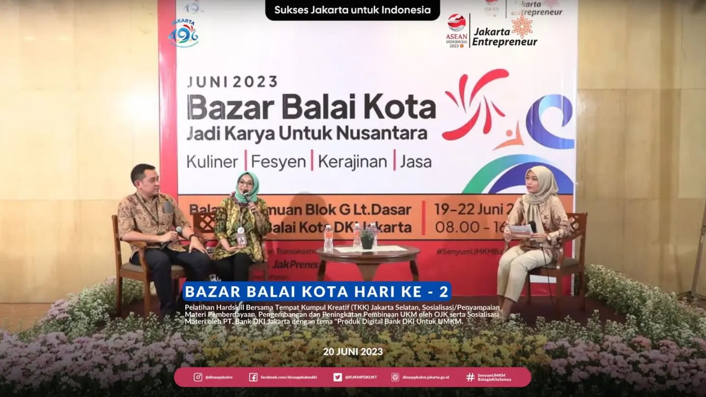 Pada hari kedua bazar balai kota ini, terdapat Pelatihan Hardskill Bersama Tempat Kumpul Kreatif (TKK) Jakarta Selatan oleh TKK Jakarta Selatan, lalu dilanjutkan dengan Sosialisasi/Penyampaian Materi Pemberdayaan, Pengembangan dan Peningkatan Pembinaan UKM oleh OJK serta Sosialisasi/Penyampaian Materi oleh PT. Bank DKI Jakarta dengan tema "Produk Digital Bank DKI Untuk UMKM.